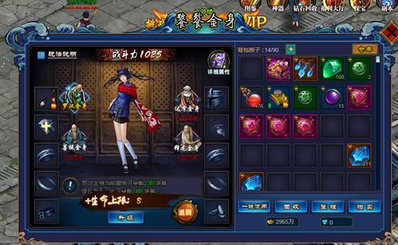 每个金身都有一套装备系统,升级金身可提高最高可穿装备的品阶,每升一级提升一阶;