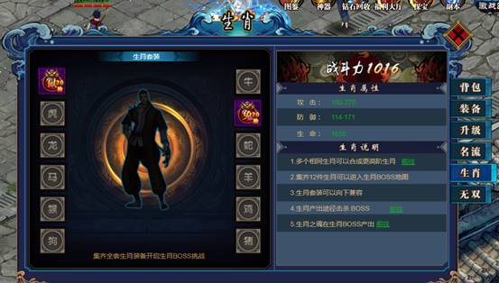 说明:装备生肖装备可提升角色属性,集齐12生肖,进入更高爆率的生肖地图。